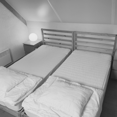 - 1 slaapkamer (1e verd.) met 2x eenpersoonsbed 90 X 200