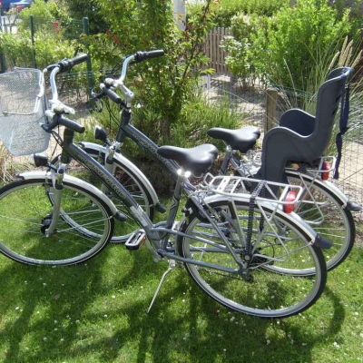- 2 damesfietsen met kinderstoeltjes