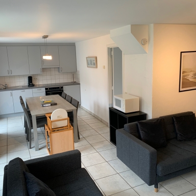 Ruime kindvriendelijke woning, 3 slaapkamers, voor max. 6 personen, afgesloten terras, eigen parkeerplaats, 800m van duinen en zee, 600 m van halte kusttram. Rustige ligging. Uniek gelegen voor het maken van mooie wandelingen en/of fietstochten door het volgen van de verschillende fietsroutes. WIFI aanwezig.