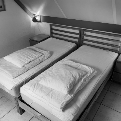 - Bedlinnen per bed te voorzien : laken, kussensloop en dekbedovertrek. De afmetingen zijn hierboven beschreven.