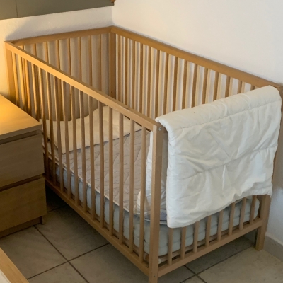 - 1 slaapkamer (1e verd.) met 2 x 1 persoonsbed 90 X 200 + kinderbed